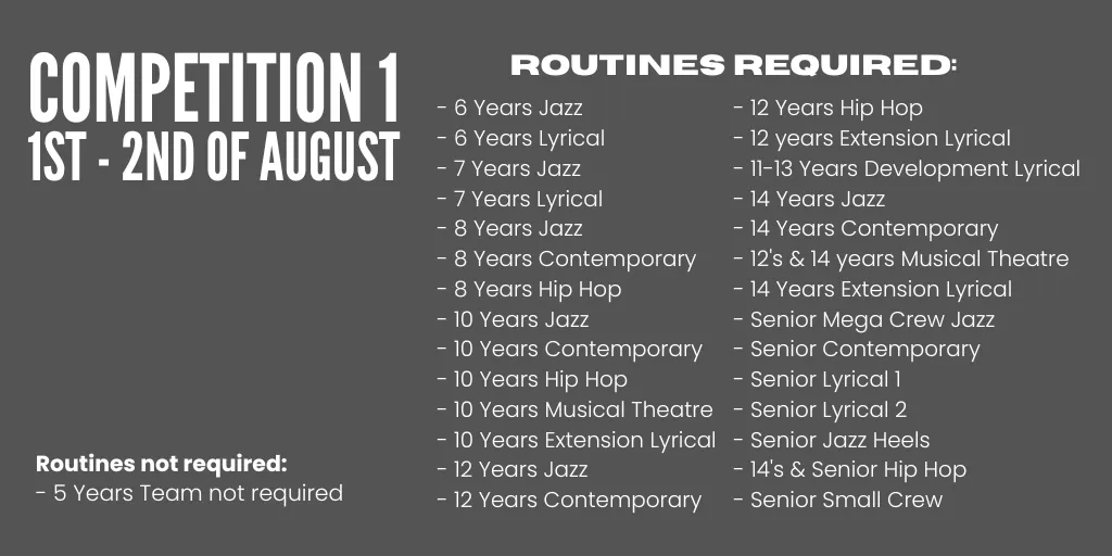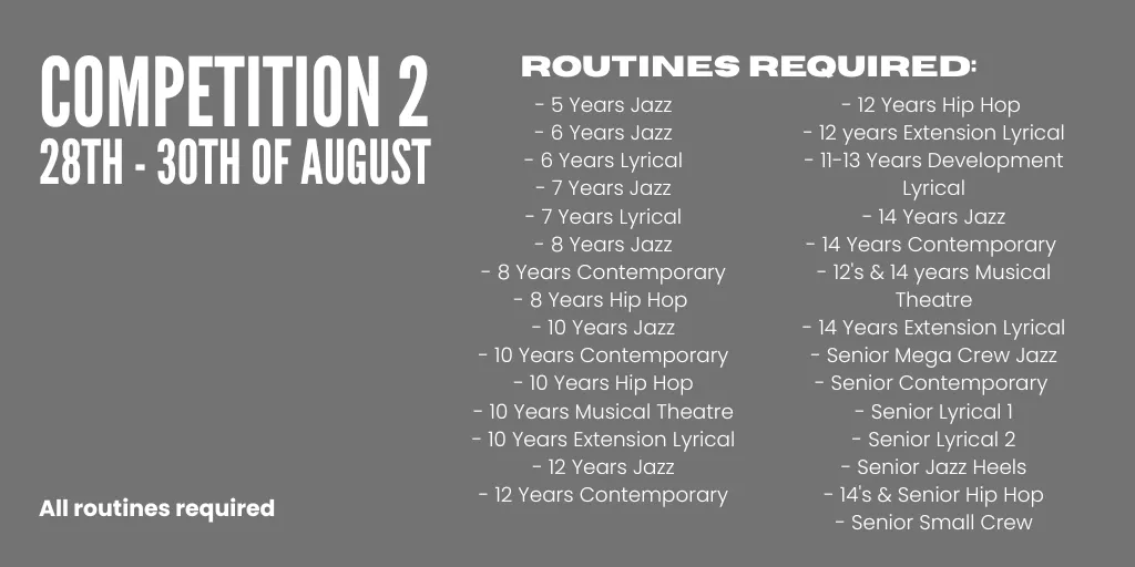 We also encourage all families to take the time to review the Company Calendar, which outlines important dates including training, events, and competitions. In our Company Calendar, you will notice different coloured sections throughout the year. These colours represent our “zones.” Zones indicate periods where dancers are expected to be fully present in classes, with no absences, as these are key training and performance times. Our green zones highlight the safest windows for families to plan travel or holidays, as these periods have minimal impact on Company training and commitments.
