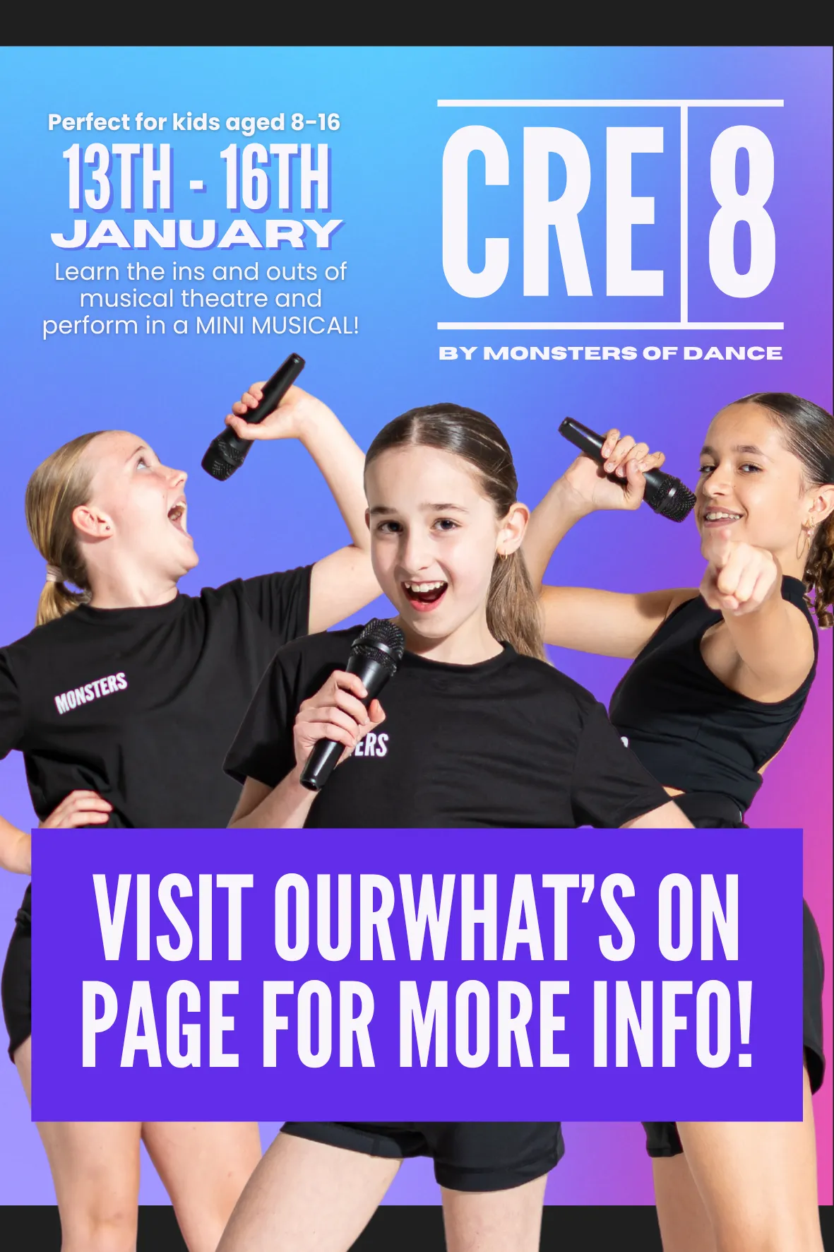 At Monsters Of Dance we strive to provide a joyful and valuable experience for our students and their families. Our diverse classes allow us to cater those looking for their very first dance class as well as offering committed training and exceptional choreography for dancers who want more!