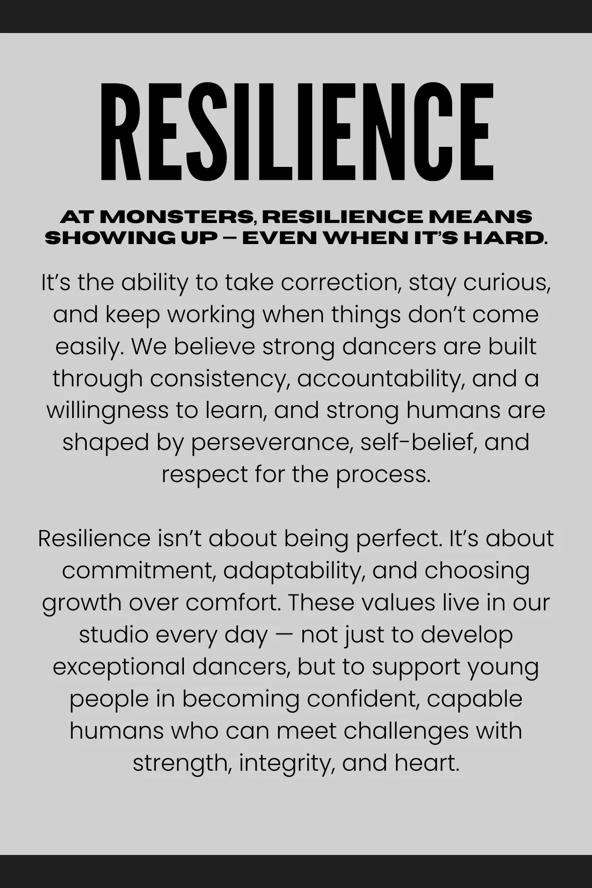 As we move into 2026, we are continuing to thoughtfully evolve the Monsters Company Program to best support our dancers and the teams we are so proud of. As part of this growth, we will be taking a more consistent and structured approach to Company commitment and attendance.