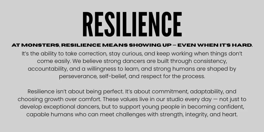 Just wanted to personally thank you for the amazing community you have created in Monsters. Savannah has gained so much confidence since joining and absolutely loves performing with her peers. The weekend showcase was amazing! Can’t wait to see them all smash the end of year.