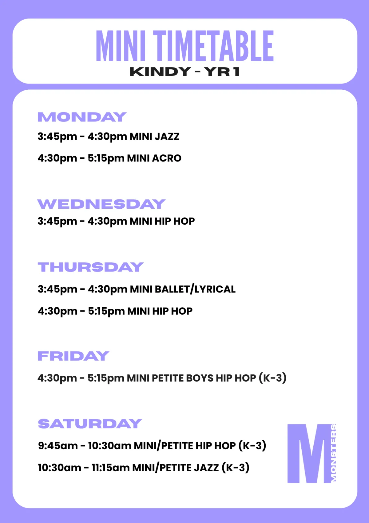 Monday - Saturday!